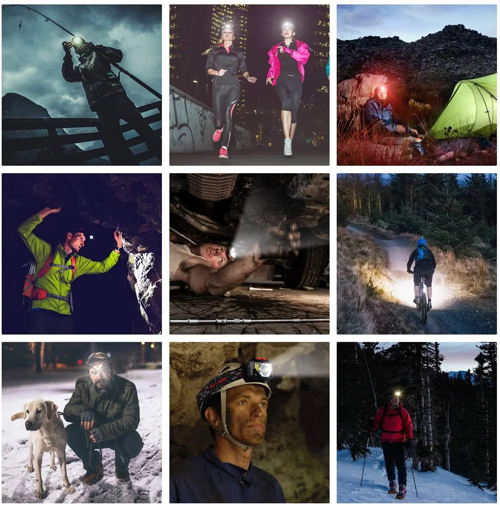 10.Multi-use -Headlamp flashlight is widely used in jogging, fishing, camping, hunting, expedition, underground work,dark places without lighting machines, etc.Useful for child and adult.