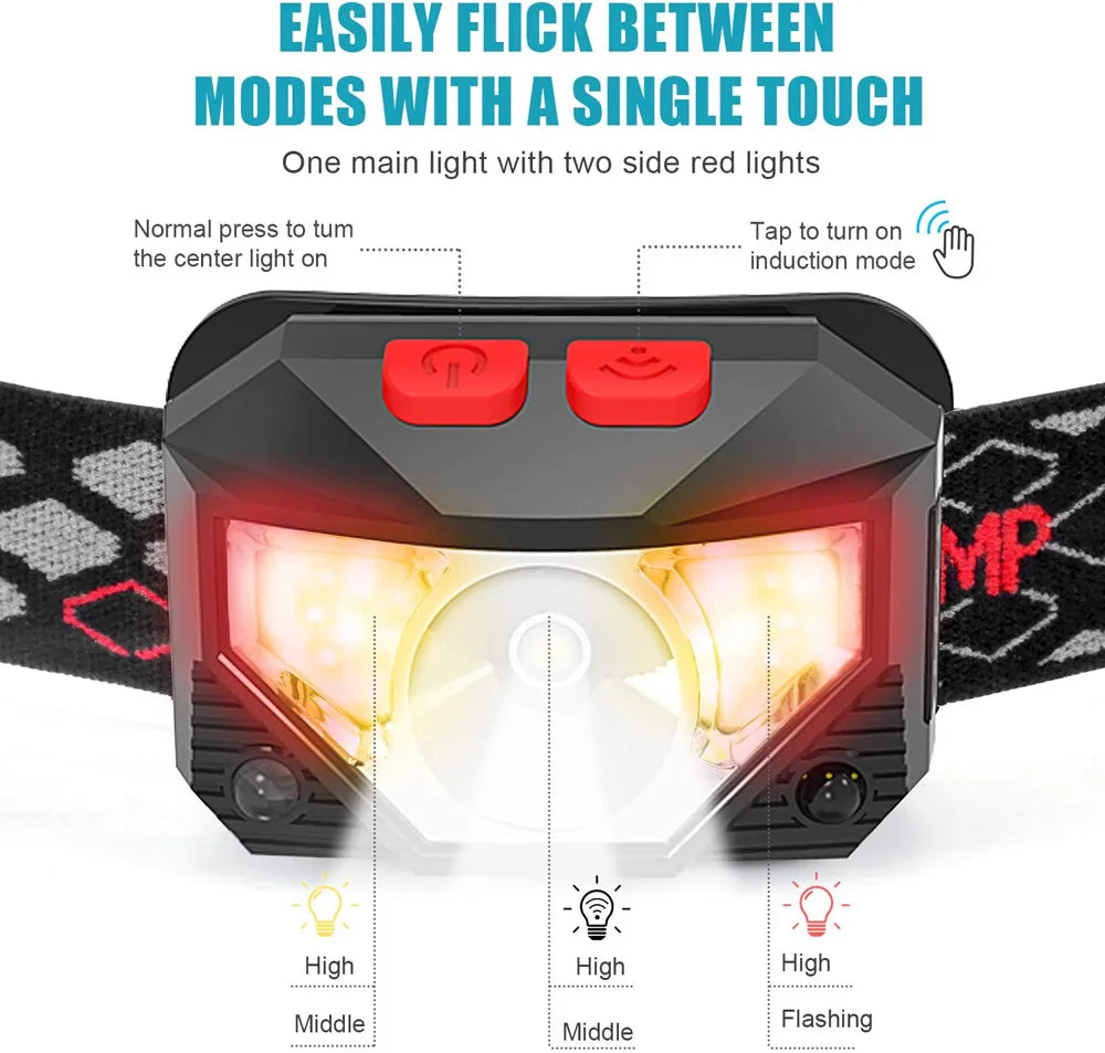 8 Modes Handfress Motion Sensor Waterproof Powerful LED Headlight Headlamp Head Lamp COB Flashlight Torch head light