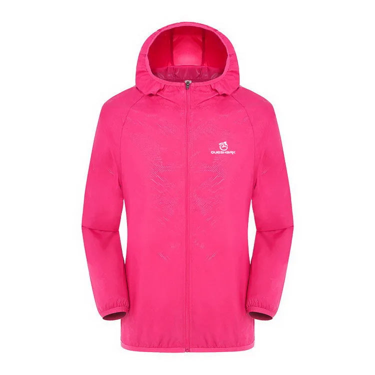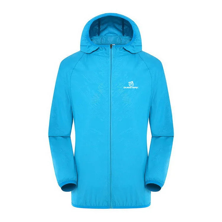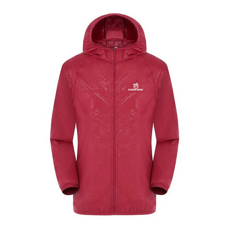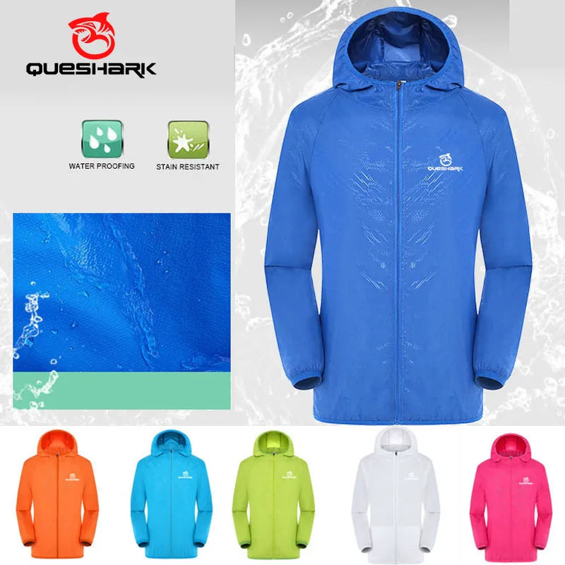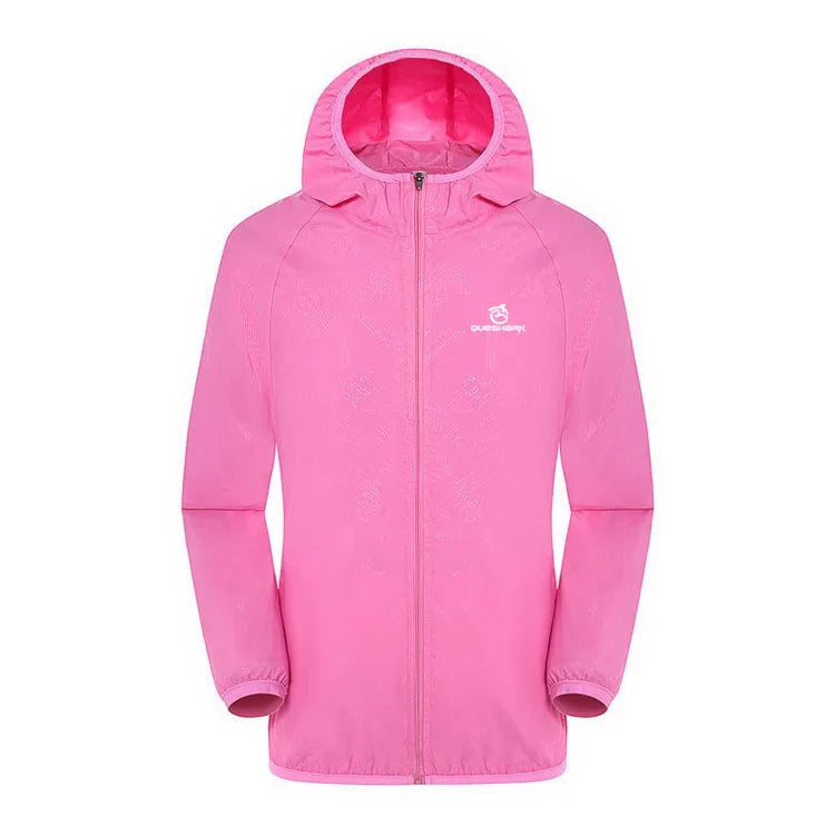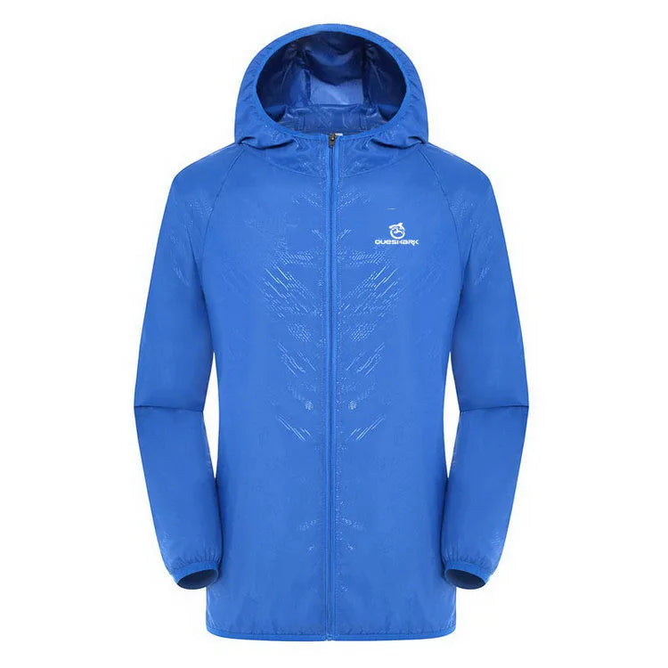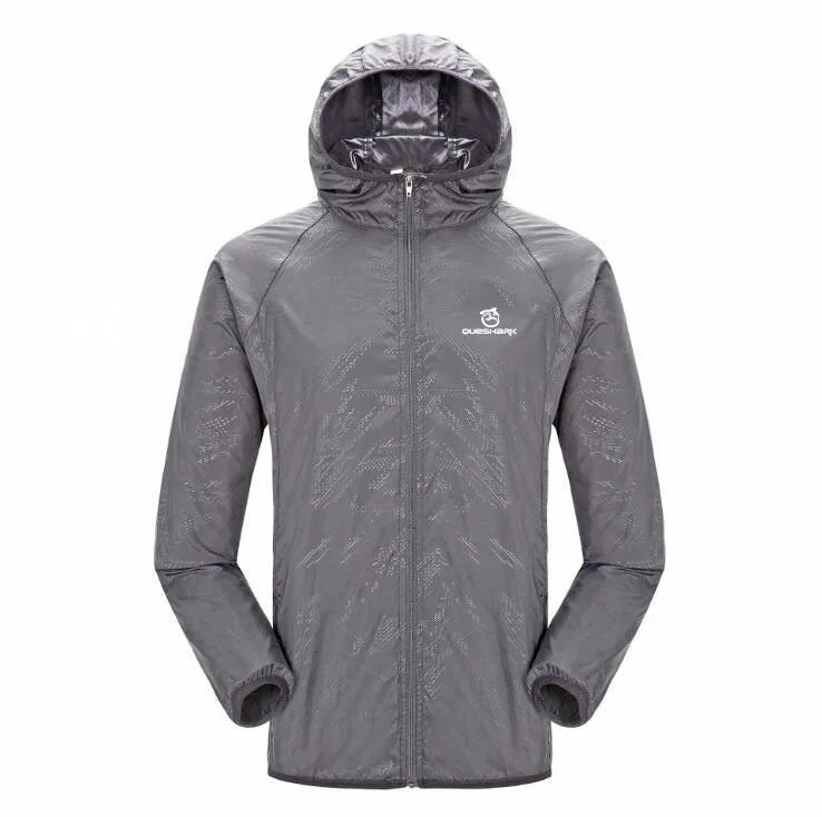 Queshark Men Women Reflective Quick Dry Anti-UV Ultra-light Hiking Jacket Running Cycling Camping Skin Coat Windbreaker Pocket